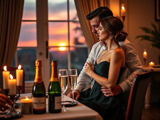 He finishes the cooking, everything is ready. He makes sure the bottle of MetternichSekt he’d brought from Berlin is safe in the freezer, and goes to the downstairs bathroom for a shower. He shaves and puts on a smart pair of chinos, a white shirt, slightly tight for him now, and joins Sarah in the dining room as the first signs of sunset appear in the sky.